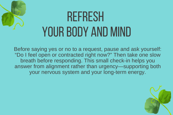 When boundaries come from a place of capacity (“I don’t have the bandwidth”), your body experiences less internal conflict than when they come from guilt or obligation.