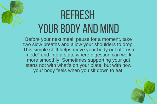 Helping someone become aware of what’s happening in their body before a meal, such as tight shoulders, shallow breathing, or the feeling of being slightly behind, often creates a bigger shift. Digestion doesn’t begin in the stomach. It begins when the body feels safe enough to pause and receive nourishment.
